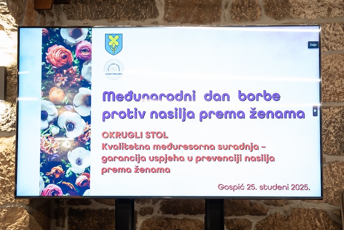Osim spomenute javne tribine, stručne radnice Područne službe Ličko–senjske, 25. studenog 2025. godine sudjelovale su na okruglom stolu pod nazivom „Kvalitetna međuresorna suradnja – garancija uspjeha u prevenciji nasilja nad ženama“ u Gospiću, a koji je organiziran od strane Policijske uprave ličko-senjske i Ličko-senjske županije povodom obilježavanja Međunarodnog dana borbe protiv nasilja nad ženama. Na okruglom stolu su osim naše djelatnice sudjelovali policijska službenica za prekršajnu problematiku nasilja u obitelji i suzbijanja diskriminacije Ravnateljstva policije Danijela Petković, samostalni policijski službenik za prekršajnu problematiku nasilja u obitelji i suzbijanja diskriminacije Policijske uprave ličko-senjske Ante Podnar, samostalna policijska službenica za prevenciju Policijske uprave ličko-senjske Kristina Orešković, samostalna policijska službenica za mladež i obradu kriminaliteta Policijske uprave ličko-senjske Dragana Dujmović, zamjenica župana Ličko-senjske županije Jasna Orešković Brkljačić, sutkinja Općinskog suda u Gospiću Dijana Tomašegović Nikolić, zamjenica općinske državne odvjetnice Općinskog državnog odvjetništva u Gospiću Melita Štampf, upraviteljica Županijske službe Ličko-senjske županije Hrvatskog zavoda za socijalni rad Nikolina Devčić i savjetnica u Ženskoj grupi Karlovac „Korak“ Nada Rukavina. Svim prisutnima se uvodno obratio župan Ličko-senjske županije Ernest Petry i zamjenik načelnika Policijske uprave ličko-senjske Stjepan Sabljić.