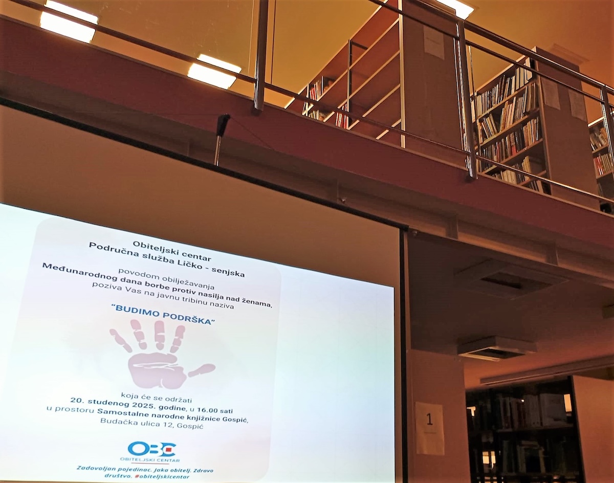 Stručne radnice Obiteljskog centra Područne službe Ličko–senjske 20. studenog 2025. godine održale su javnu tribinu pod nazivom “Budimo podrška” namijenjenu odgojno – obrazovnim djelatnicima s područja okolice grada Gospića, kao i ostatku zainteresiranih građana, a kako bi na prigodan način obilježili Međunarodni dan borbe protiv nasilja nad ženama koji se u svijetu obilježava svakog 25. studenog. Javna tribina se održala u prostoru Samostalne narodne knjižnice Gospić, gdje su nam velikodušno otvorili vrata i za neke buduće suradnje.