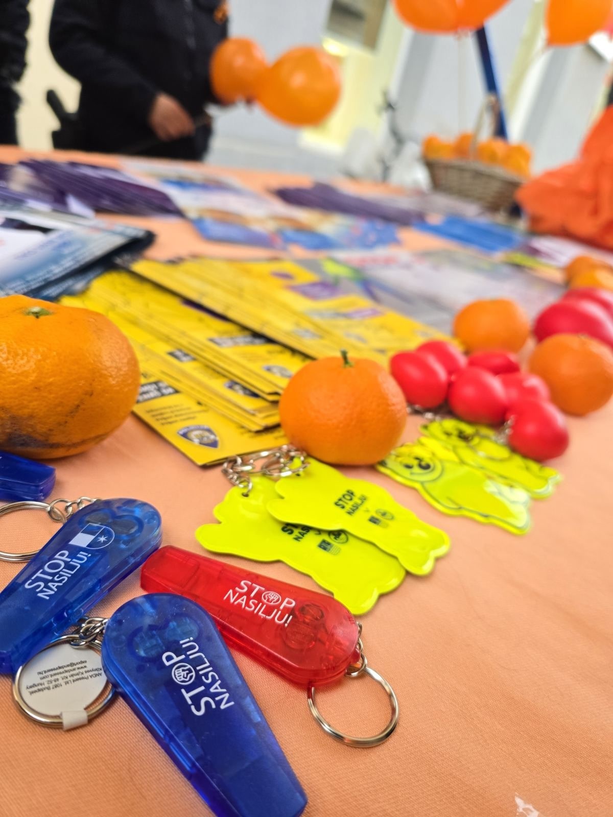 U središtu grada, pod sloganom „Njezina sigurnost, naš prioritet“, prolaznici su mogli dobiti korisne informacije o oblicima nasilja nad ženama, važnosti prijavljivanja nasilja te ulozi zajednice u stvaranju sigurnog okruženja. Posjetiteljima su dijeljeni narančasti broševi, baloni i mandarine – simboli novih početaka i života bez nasilja.