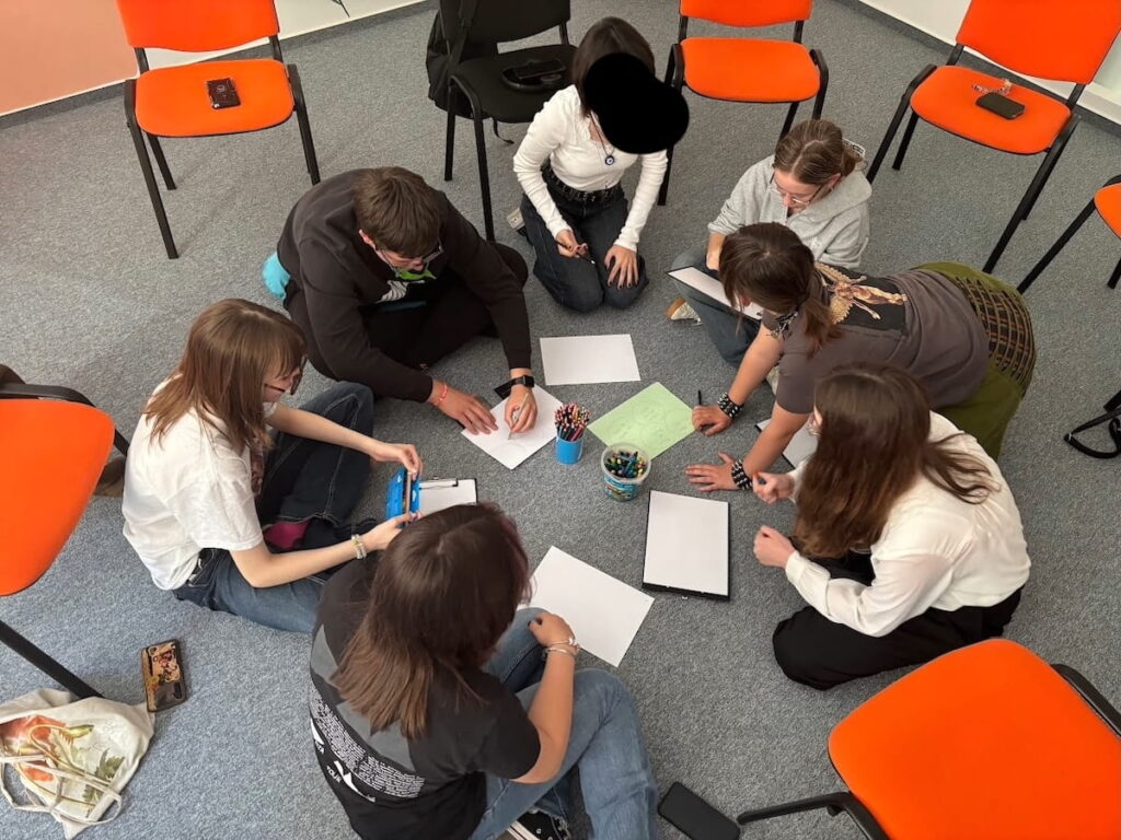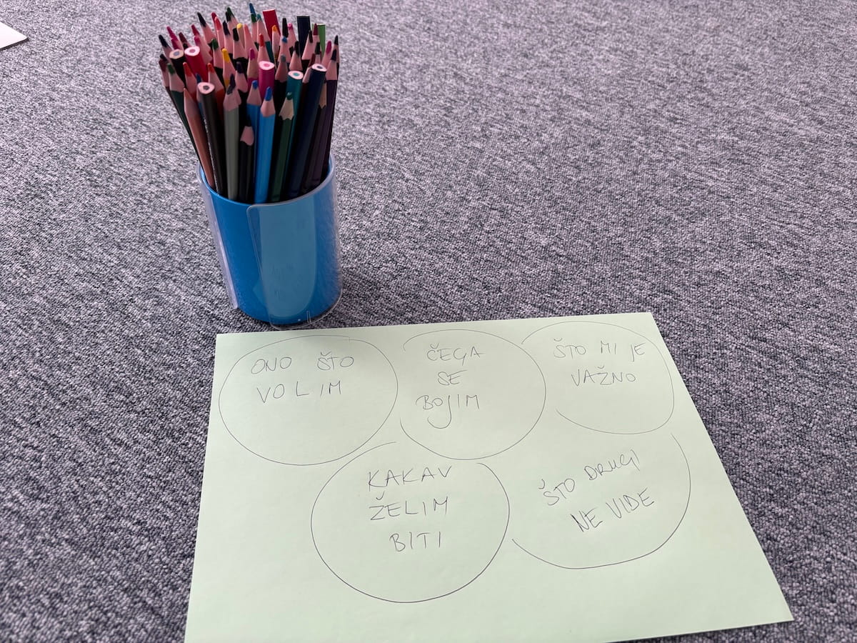 Prva radionica bila je usmjerena na međusobno upoznavanje, uspostavljanje grupnih pravila te promišljanje o pitanju “Tko sam ja?”. U radu su sudjelovala četiri srednjoškolca i sedam osnovnoškolaca, a susret je protekao u poticajnoj i otvorenoj atmosferi.