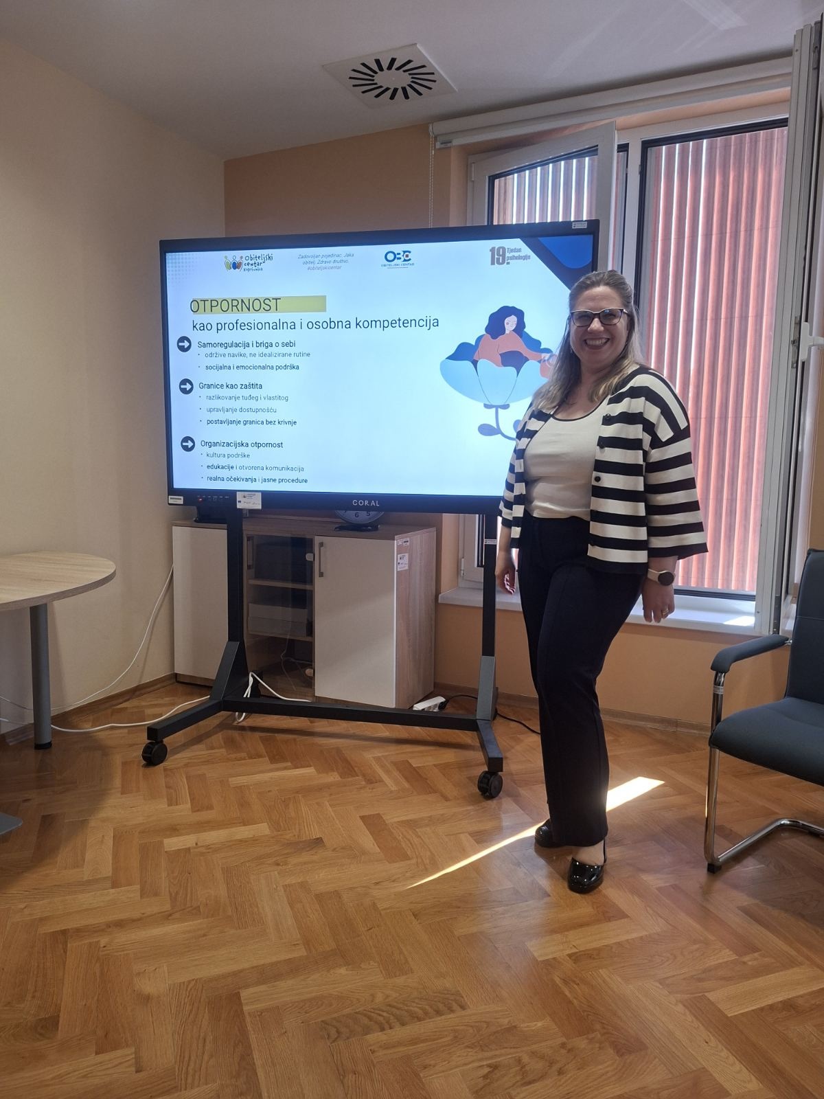 Predavanje je završilo raspravom u kojoj su sudionici razmijenili iskustva iz prakse te istaknuli važnost kontinuiranog promišljanja o psihološkim zahtjevima pomažućih profesija i potrebi za sustavnom podrškom stručnjacima koji svakodnevno rade s ljudima u izazovnim životnim okolnostima.
