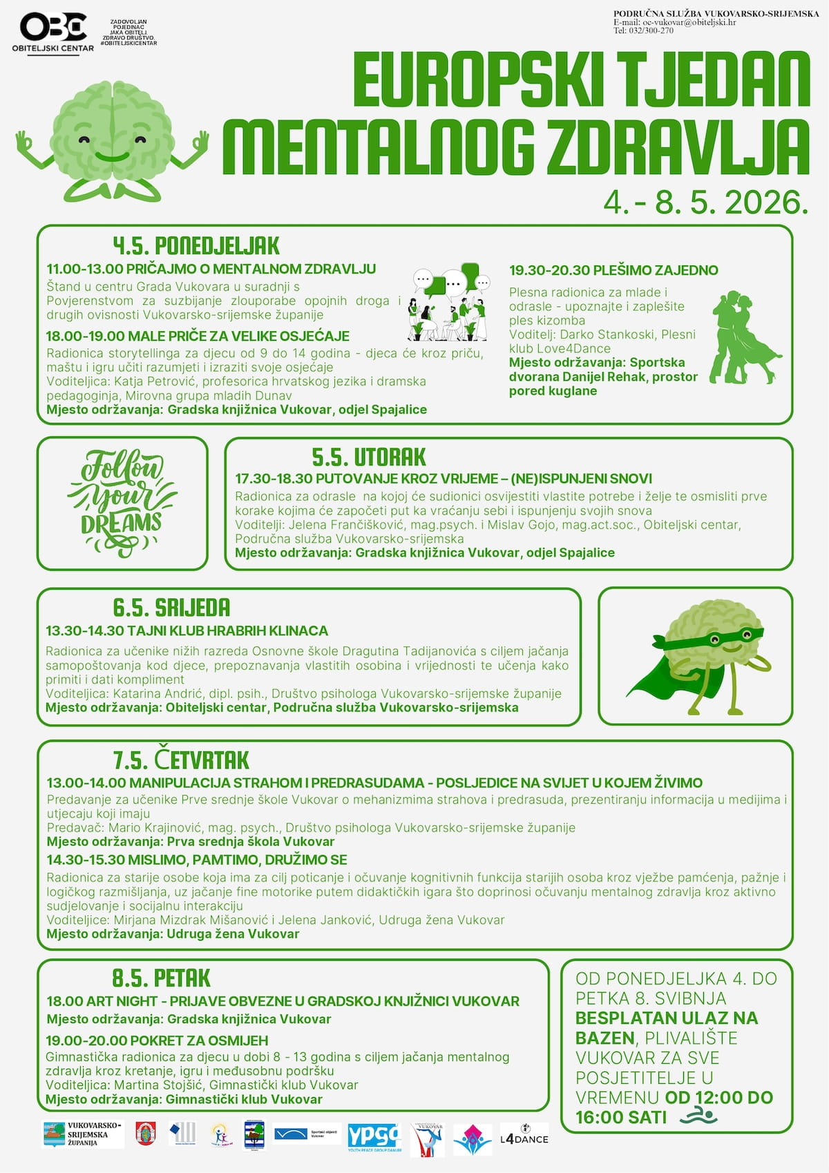 Obiteljski centar – Područna služba Vukovarsko-srijemska u okviru Plana i programa rada za 2026. godinu organizira obilježavanje Europskog tjedna mentalnog zdravlja, koji će se održati od 4. do 8. svibnja.