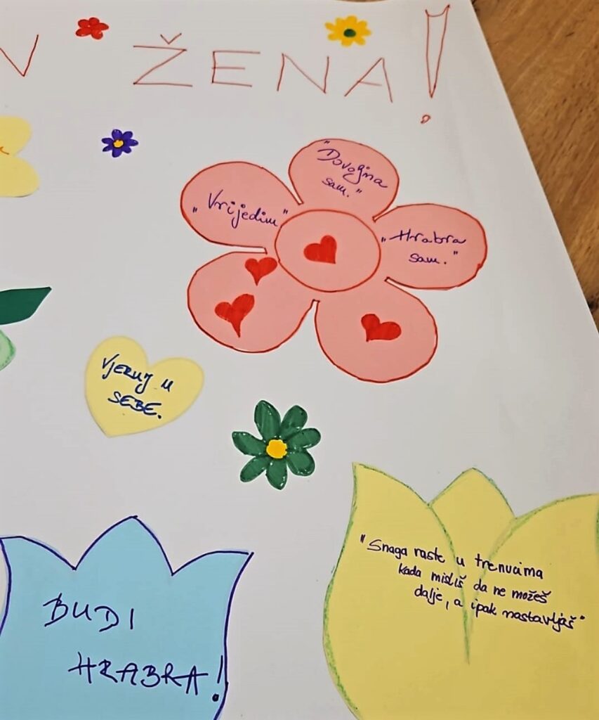 Međunarodni dan žena obilježavamo 8. ožujka svake godine s ciljem ukazivanja na postignuća žena te borbu za jednakopravnost i ravnopravnost žena u društvu. Tim povodom u našoj područnoj službi odlučili smo organizirati radionicu za umirovljenice Grada Senja te u ugodnoj i opuštenoj atmosferi čuti njihova razmišljanja o položaju žena u društvu nekad i danas te njihove savjete i poruke drugim ženama koje se susreću s raznim životnim izazovima i promjenama u društvu. Svoje bogato životno iskustvo iste su pretočile u poruke usmjerene jačanju unutarnje snage i samopouzdanja, podrške i zajedništva, motivacije i uspjeha te ujedinile na zajedničkom plakatu koji sada krasi prostorije naše područne službe.