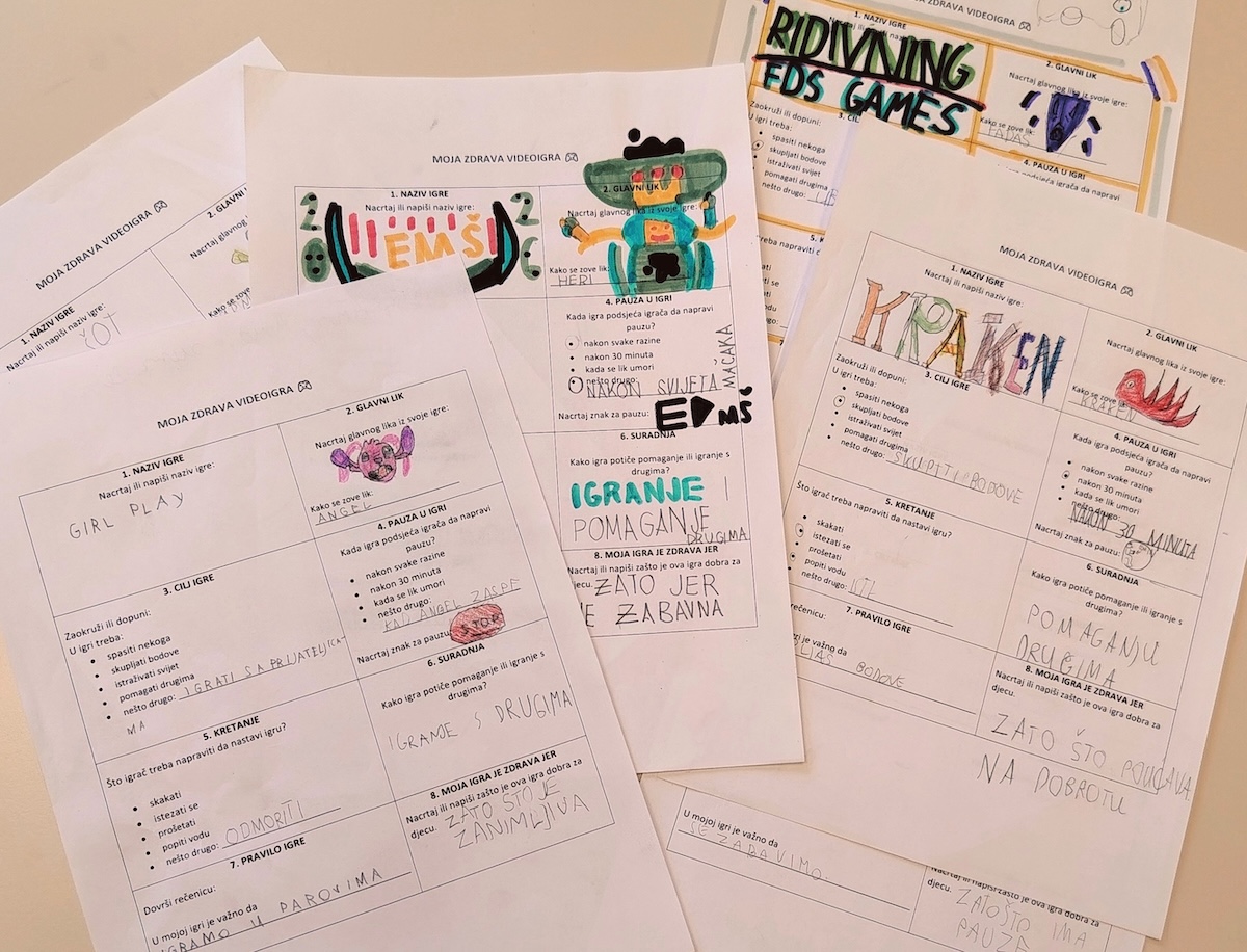 U posljednjem dijelu radionice učenici su u grupama osmislili vlastite „zdrave videoigre“ koje potiču kretanje, uključuju pauze za odmor, ograničavaju predugo igranje te nagrađuju suradnju i zajedništvo, a ne samo pobjedu. Ova aktivnost potaknula je učenike na razmišljanje o odgovornom i umjerenom korištenju videoigara u slobodno vrijeme.