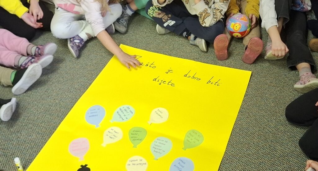 Radionice su provedene u dvije vrtićke skupine Dječjeg vrtića Kustošija – Područni objekt Gajnice i Centralni objekt Kustošija. U radionicama je sudjelovalo 32 djece. S djecom se kroz kreativne radionice radilo na prepoznavanju i osvještavanju vlastite uloge te njihovog doprinosa. Djeca su poticana na izražavanje vlastitog mišljenja u sigurnom okruženju, razvijanje pozitivne slike o sebi te prepoznavanje važnosti uloge djeteta. Osim osvještavanja njihove uloge, djeca su imala priliku osvijestiti i svoje potrebe te kako ih zadovoljavaju, a kroz drugu radionicu prepoznati i osvijestiti osnovne emocije i naučiti načine samoregulacije. Radionice su doprinijele i boljem upoznavanju te međusobnom povezivanju djece.