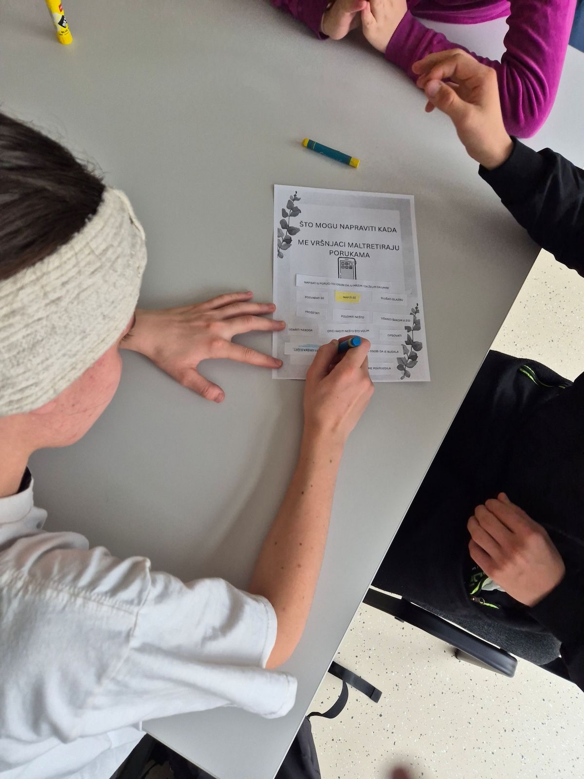 Sve radionice su bile interaktivne i učenici su vrlo rado sudjelovali u aktivnostima. Bilo je puno razgovora, izrada plakata, lijepljenja, pisanja, pjesme i bombona. Kroz program su naučili puno stvari o svojim prijateljima, ali i samima sebi. Ono što je bilo vidljivo kroz radionice da su to mladi ljudi koji vole sudjelovati u raznim aktivnostima, vole svoju školu i jako lijepo surađuju jedni s drugima.
