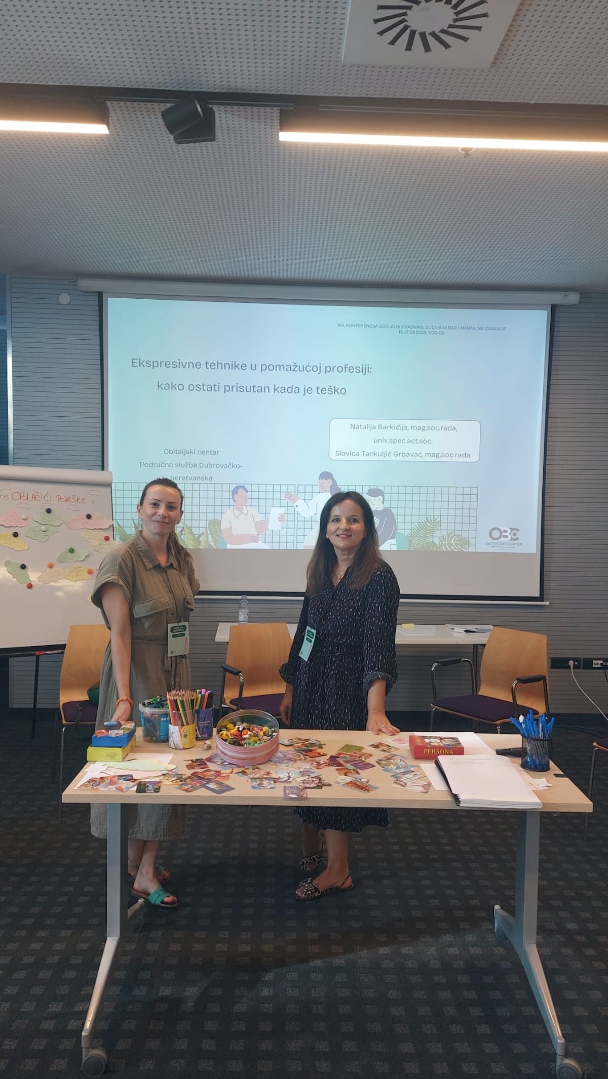Stručne djelatnice Obiteljskog centra imale su priliku predstaviti svoj rad kroz radionicu pod nazivom „Ekspresivne tehnike u radu s korisnicima: kako ostati prisutan kada je teško“. Radionica je bila usmjerena na prikaz praktičnih alata i metoda kojima se socijalni radnici mogu koristiti u radu s korisnicima, osobito u zahtjevnim i emocionalno intenzivnim situacijama.