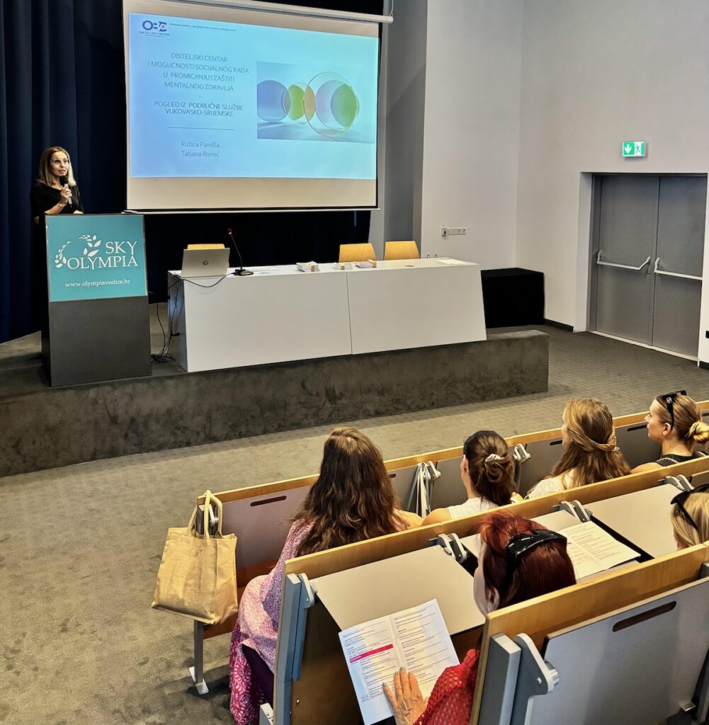 Stručne radnice Ružica Pandža i Tatjana Romić aktivno su sudjelovale na XIV. Konferenciji socijalnih radnika “Socijalni rad i mentalno zdravlje“ koja se održala u Vodicama od 15. do 17. rujna, a na kojoj su održale predavanje “Obiteljski centar i mogućnosti socijalnog rada u promicanju i zaštiti mentalnog zdravlja – Pogled iz Područne službe Vukovarsko-srijemske“.