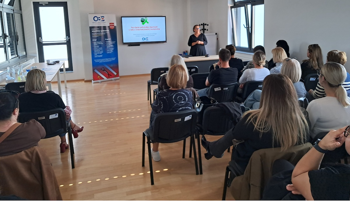Također, kroz stručno predavanje „Razvoj psihološke otpornosti z radu s traumatiziranim korisnicima“ koje je održano u prostorijama Obiteljskog centra za stručne radnice koji rade u institucijama iz sustava socijalne skrbi potaknuli smo razmišljanje o benefitima koje dobivamo u svom radu, kako se mijenjamo radeći ovaj posao i kako možemo napredovati i razvijati svoju otpornost.