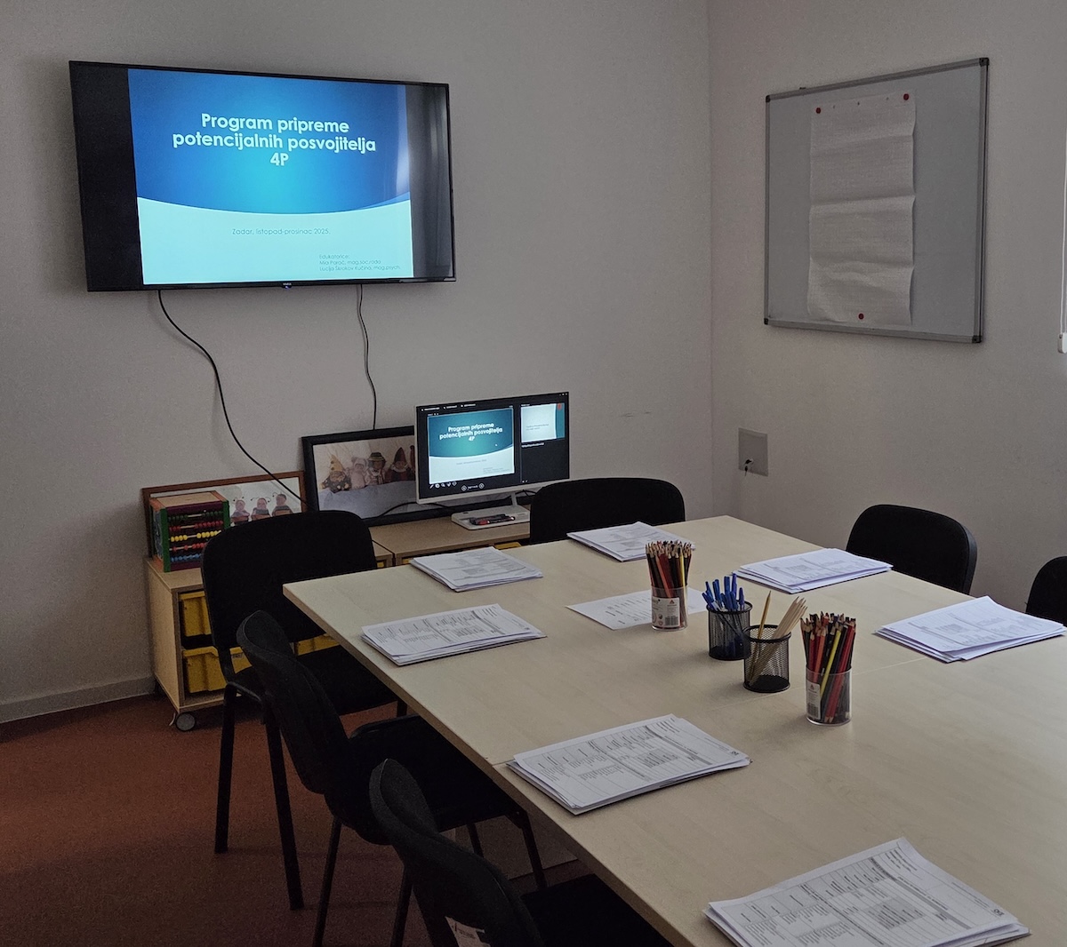 Dana 1. listopada 2025. u Obiteljskom centru, Područna služba Zadarska započela je provedba Programa stručne pripreme potencijalnih posvojitelja 4P. U program je uključeno 8 sudionika, a provode ga stručne radnice Mia Parać, mag.soc.rada i Lucija Škrokov Kučina, mag.psych.
